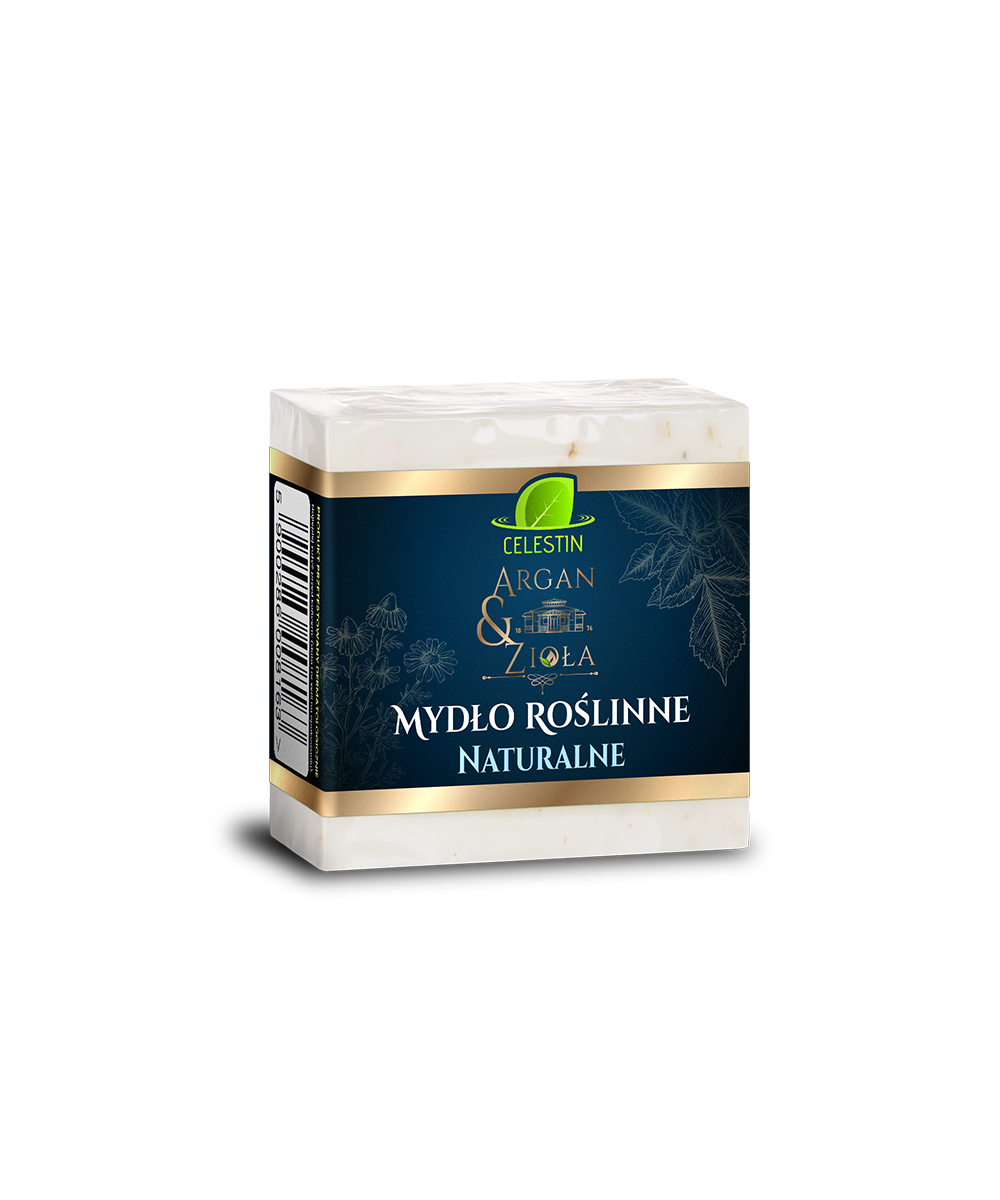 Naturalne mydło roślinne z masłem Shea z EcoCertem, olejkiem arganowym z EcoCertem i nawilżającymi olejami (macadamia, avocado z EcoCertem, jojoba, oliwa z oliwek, olej ze słodkich migdałów) z dodatkiem suszonych polskich ziół (rumianek, nagietek, pokrzywa,